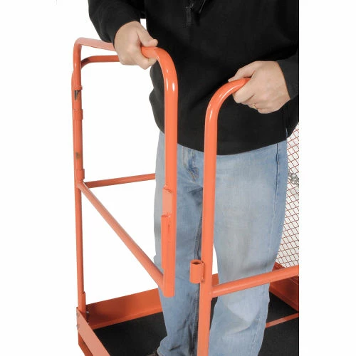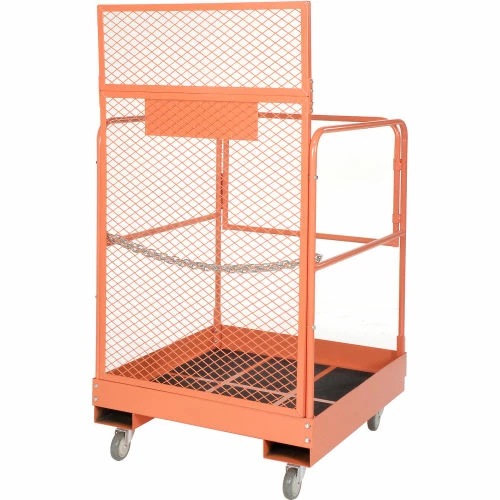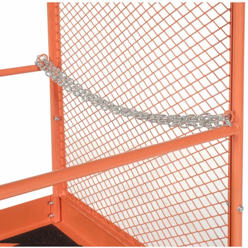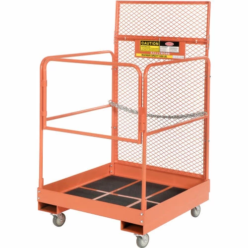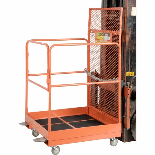 Forklift Maintenance Platform 36×48 reaches higher than ladders and includes added safety features making your tasks at hand easier to complete. This item includes a non-skid platform with 4″ toe guard edge, a steel safety screen to shield the operator from the forklift mast, and a safety chain to attach the platform to the forklift.