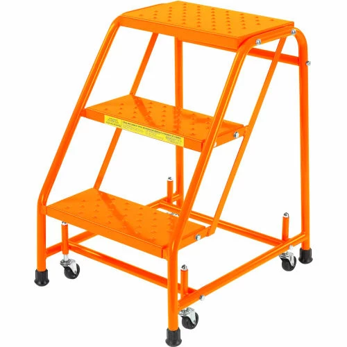Perforated 16″W 3 Step Steel Rolling Ladder 10″D Top Step – Orange – 318P-O
