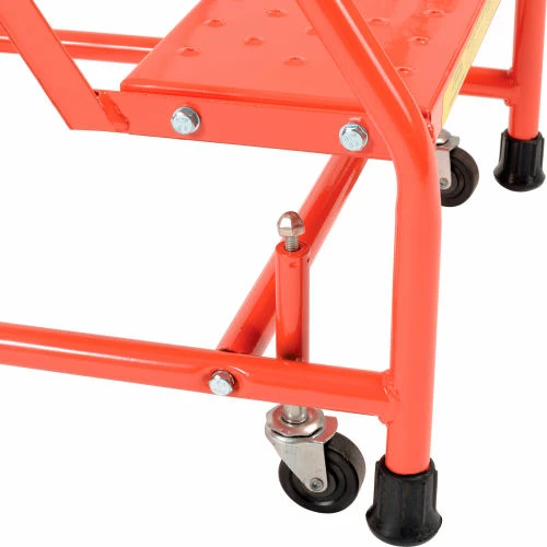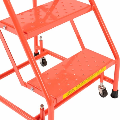 Perforated 16″W 3 Step Steel Rolling Ladder 10″D Top Step W/ Handrails – Orange – H318P-O