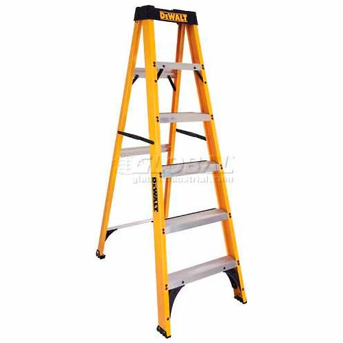 DeWalt® Fiberglass Step Ladders are ideal for industrial and commercial applications. Features durable top with magnet and tool slots. Pinch-resistant spreader braces provide stability. Large step surface provides extra comfort. Includes double-riveted steps and slip-resistant aluminum shoes. 250 lb. capacity. Meets OSHA requirements and ANSI standards.