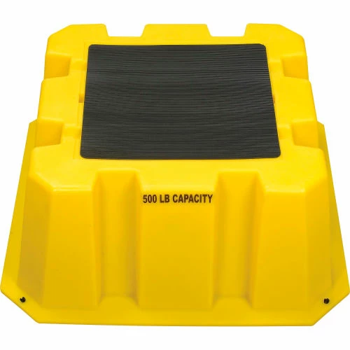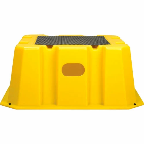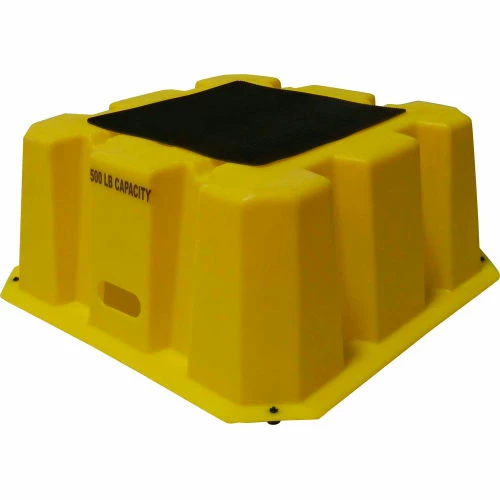 Constructed of lightweight, linier low density polyethylene. Durable design. Rust proof and impervious to chemicals. Rounded side hand slot for easy lifting. Features abrasive non-slip surface on steps, and rubber feet to help prevent sliding. Step stands begin to loose stiffness and become soft at 180°F, and melt at 330°F. 500 lb. capacity. FDA/USDA approved. Yellow color finish.