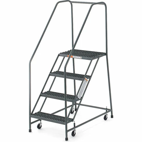 50 Degree Ladder slope. Rugged square tube construction with round tube handrails. Perforated treads. 450 lbs capacity. Meets OSHA standards.