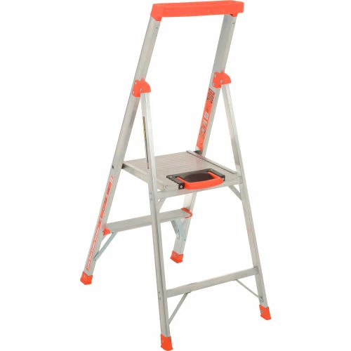 The lightweight Flip-N-Lite opens easily with just one hand and offers comfortable, deep rungs with a huge, secure standing platform. With a lightweight, slim profile and extra heavy duty construction. Rated to hold 300 lbs. 4′ reach. Complies with all applicable OSHA requirements and ANSI 14.2 standards.