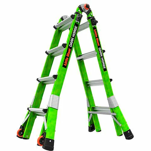 The best part about the Little Giant multi-position ladders is that it accomplishes multiple tasks with one ladder. Set up the Dark Horse in A-frame, extension, 90-degree, staircase and trestle-and-plank* positions, for a versatile, easy climbing experience.