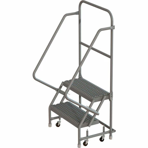Tri-Arc 2 Step 16"W 10"D Top Step Steel Rolling Ladder, Grip Strut Tread, 42" Handrail – KDSR102162
