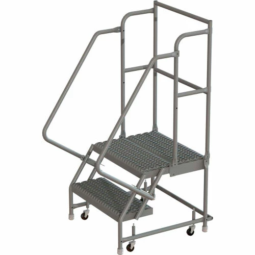 Tri-Arc 2 Step 24"W 30"D Top Step Steel Rolling Ladder, Grip Strut Tread, 42" Handrail – KDSR102242-D3
