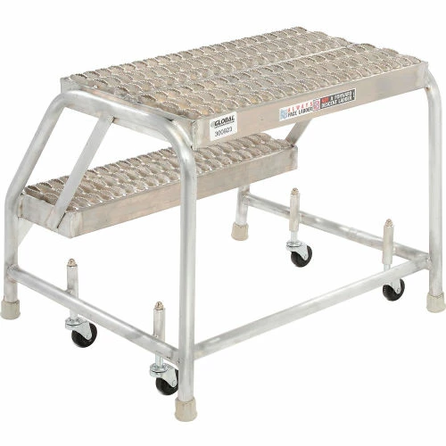 2 Step Aluminum Rolling Ladder, 24″W Grip Step, W/O Handrails