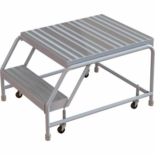 2 Step Aluminum Rolling Ladder, 24″W Ribbed Tread, 28″D Top Step, W/O Handrails