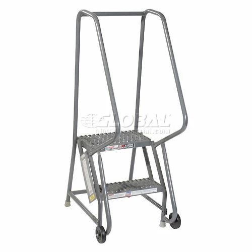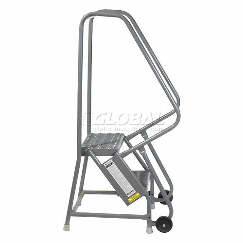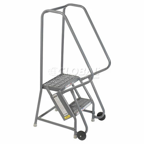 Heavy-duty 1-1/16″ steel tubing makes this ladder ideal for warehouse use, stock picking or maintenance operations. This Grip Strut model has expanded steel steps for maximum traction and excellent ventilation that allows steps to dry efficiently. Tilt ladder forward on two 4″ wheels to move from job to job. 4 large rubber end caps protect floor surfaces. 7″ deep steps, 10″ deep top platform and 42″ handrails provide sure footing for safe, worry-free use. Meets OSHA requirements. Powder coat finish. 450 lb. capacity.