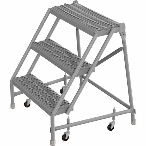 Tri-Arc 3 Step 24"W 10"D Top Step Steel Rolling Ladder, Grip Strut Tread, No Handrail – KDSR003242