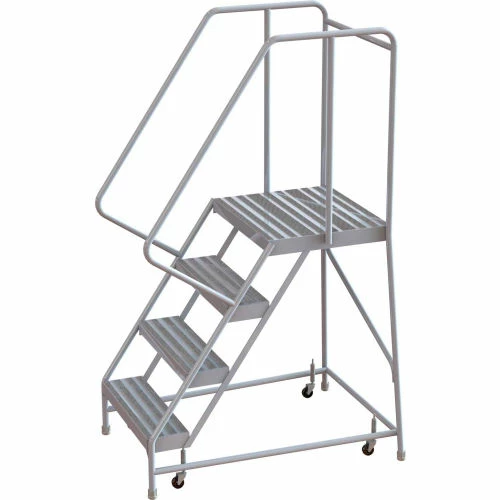 Tri-Arc 4 Step Aluminum Rolling Ladder, 16"W Ribbed Tread, 21"D Top Step, 32" Handrails – WLAR104164-D4