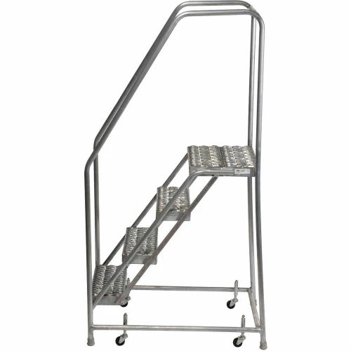 Tri-Arc 4 Step Aluminum Rolling Ladder, 24"W Grip Step, 30" Handrails – WLAR104245
