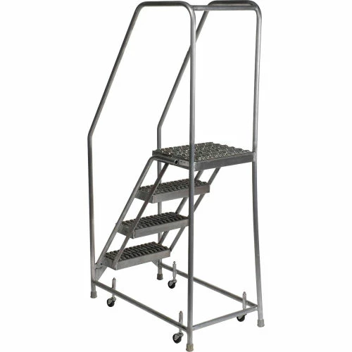 4 Step Aluminum Rolling Ladder, 24″W Grip Step, 30″ Handrails