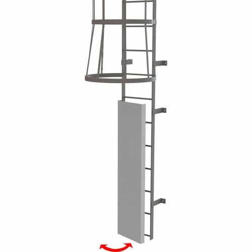 Ideal to secure access to fixed steel ladders. Guard door closes off entry onto a fixed ladder. Powder coated gray finish. Intended for purchase at same time as fixed ladder.
