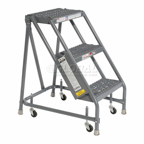 Tri-Arc Grip 16"W 3 Step Steel Rolling Ladder 20"D Top Step – KDSR003162-D2