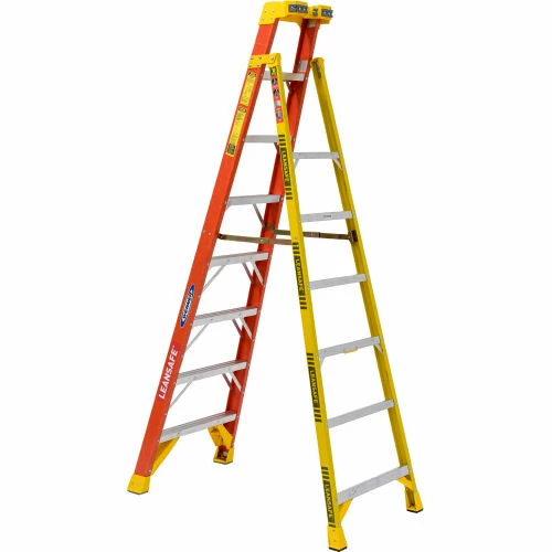 The L6208 Fiberglass 8 ft. Leaning Ladder is ideal for the professional. With a duty rating of 300 pounds, it features the LEANSAFEâ„¢ ladder top that secures tools and accessories, and is uniquely designed to securely lean against flat wall surfaces, wall corners, poles, and wall studs and perform as a standard stepladder.